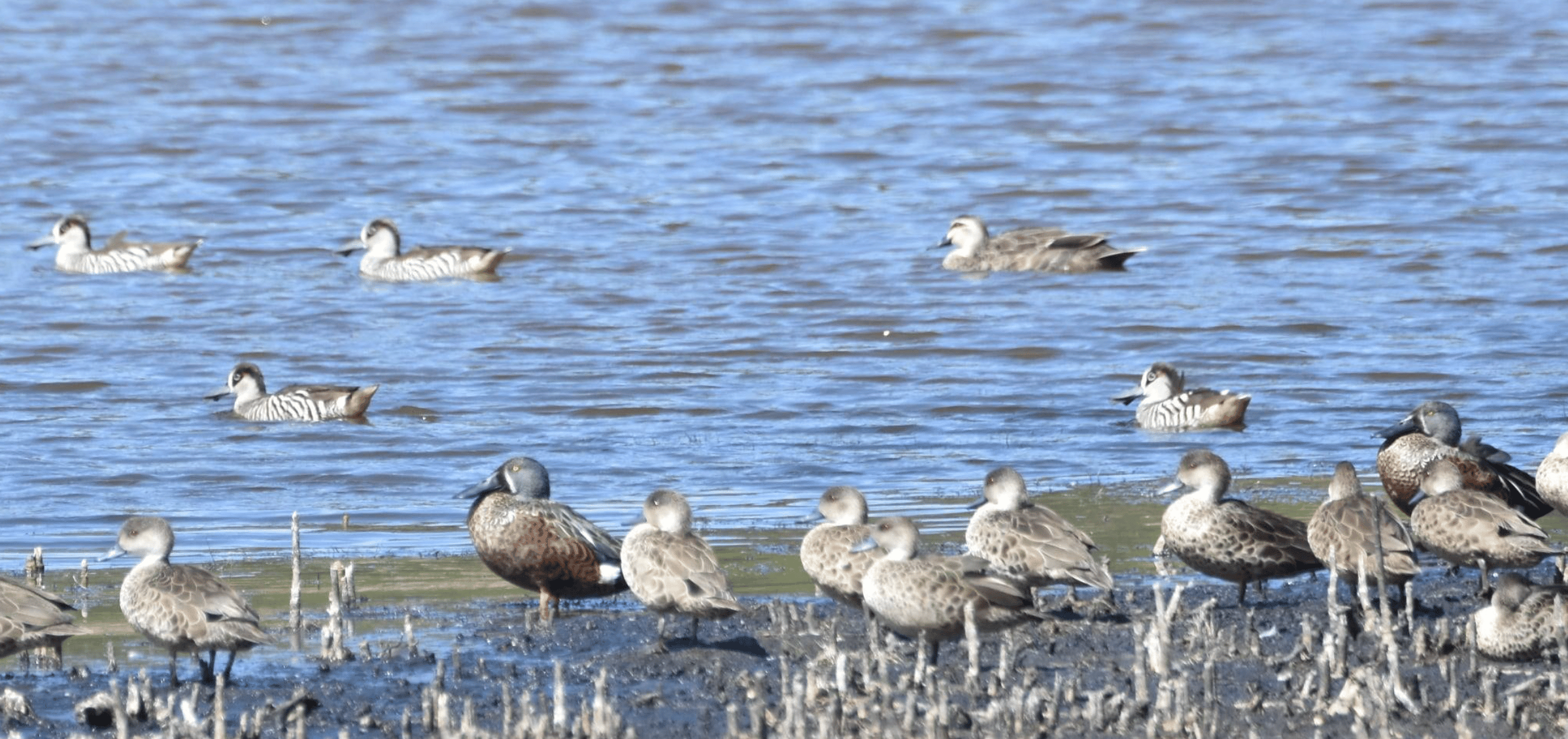 Two protected Blue-winged Shovelers among other non-protected ducks. Image: Andrew Patterson