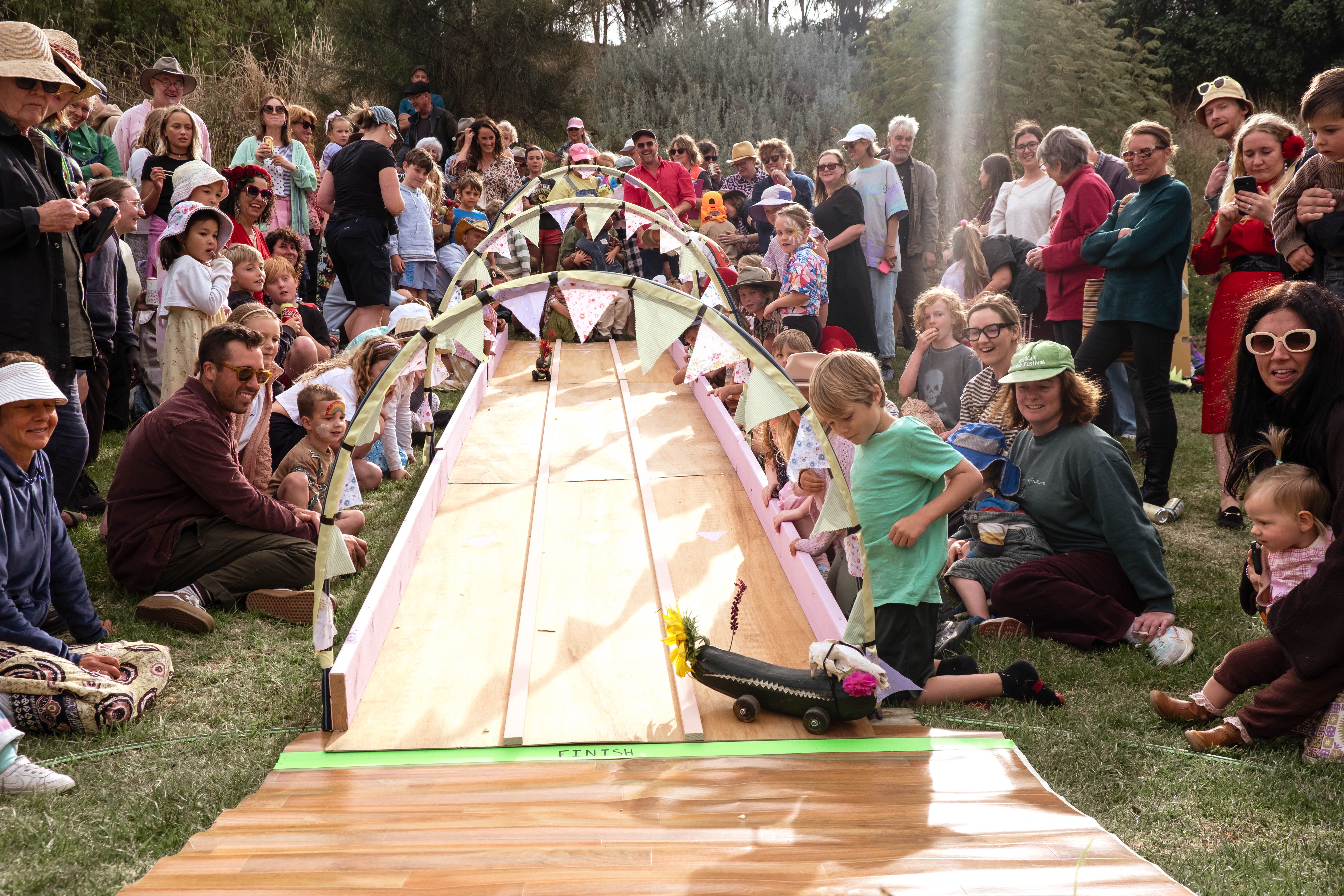 Zucchinis aren’t typically known for their speed, but 29 of them put the pedal to the metal during Saturday’s Harfest in the Quarry at the Warrnambool Community Garden.