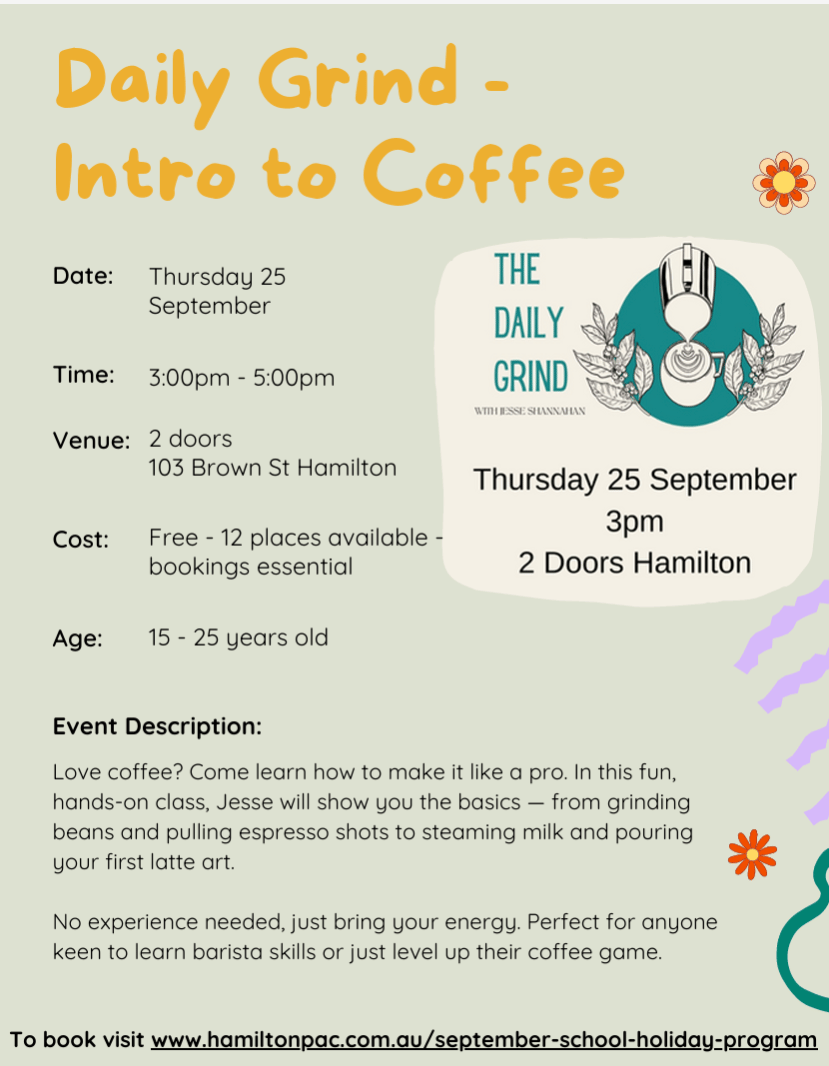 In this hands-on class, 15-25 year-olds can learn the basics, from grinding beans and pulling espresso shots to steaming milk and pouring latte art, no experience needed.